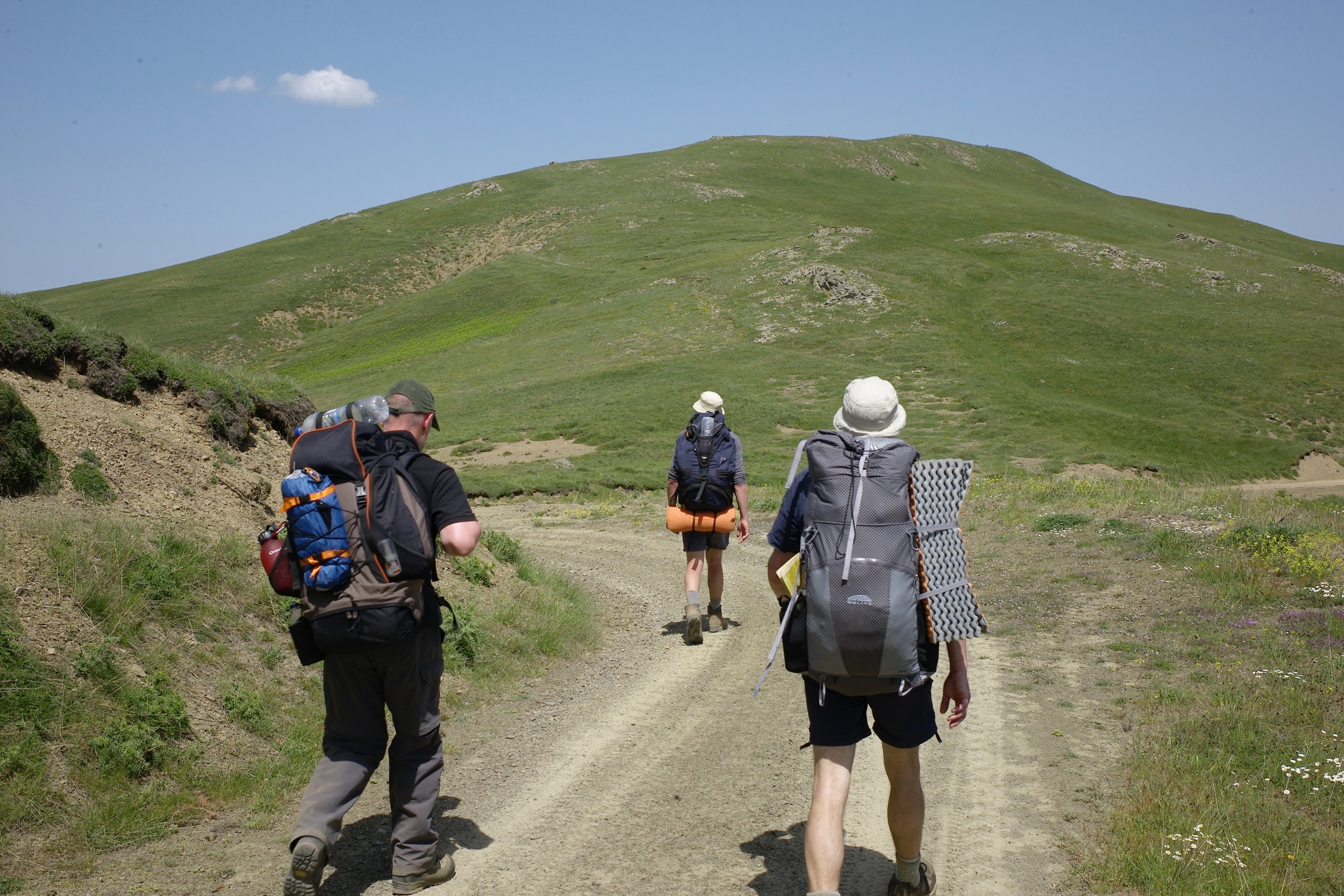 Previous Image Next Image S7/ The line of the old path traverses left up the grassy slope ahead.Sarádena to Kokália Old path climbs diagonally left up grassy slope ahead. The line is just visible.